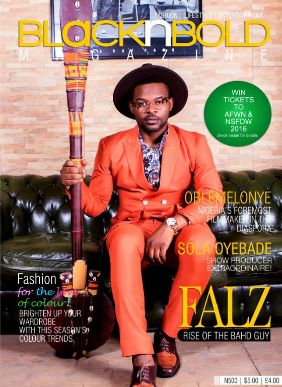 Folarin Falana, popularly known as Falz is going to be the first male cover personality for the latest edition of BLACKNBOLD Magazine sporting a nicely cut orange double breasted suit, a print button down shirt and the bahd guy’s very own signature pieces; Hat and frames.