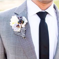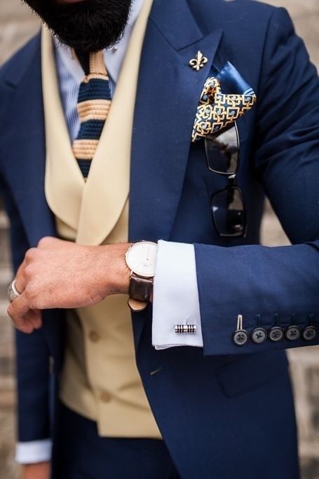 Accessorizing may not be much of a problem for the groom, since he can always choose from a long list of Pocket squares, boutonnières, collar pins (if opting for regular dress ties), lapel pins and bracelets. For the big day, a very elegant boutonnière (A French word for buttonhole and it’s a floral decoration for a gentleman’s buttonhole) will do just fine, while the groomsmen can use elegant lapel pins and pocket squares that correspond with the entire outfit.