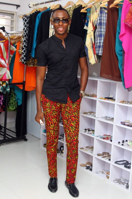WEARING TROUSERS MADE OF AFRICAN FABRIC